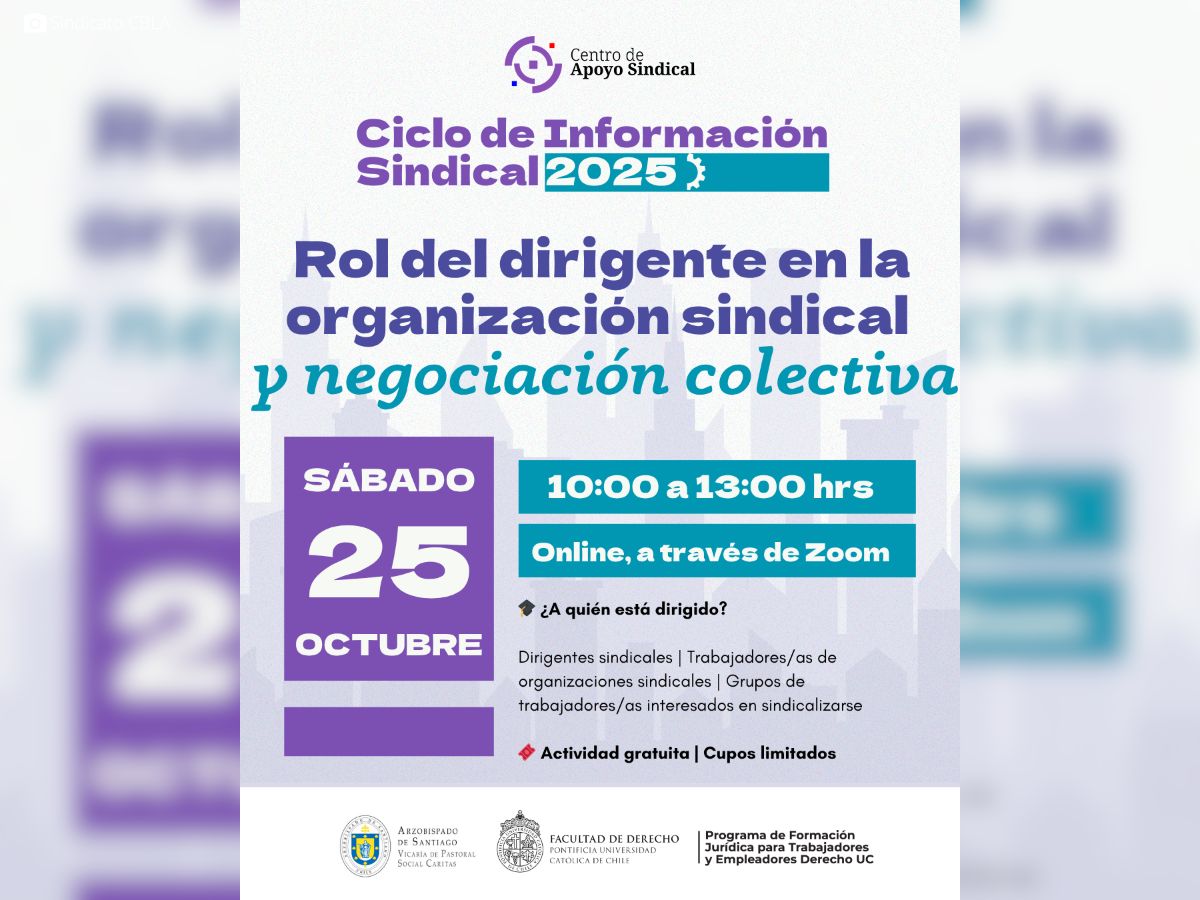 Capacitación y formación integral de dirigentes sindicales en materias relevantes para el ejercicio de su liderazgo y su rol social en la construcción de sociedad.