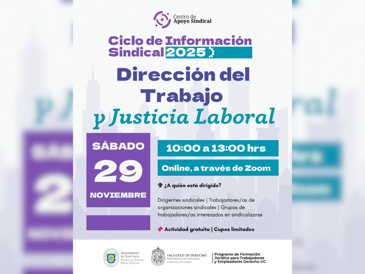 Alianza entre la Vicaría de Pastoral Social Caritas y el Programa de Formación Jurídica para Trabajadores y Empleadores de la Facultad de Derecho UC, con miras a colaborar con el fortalecimiento de la asociación y el liderazgo en el mundo del trabajo, inspirados en la Doctrina Social de la Iglesia.