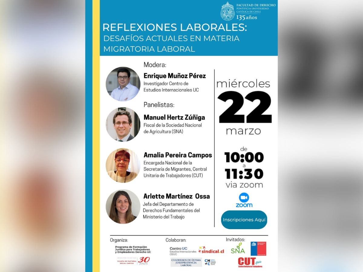 Alianza entre la Vicaría de Pastoral Social Caritas y el Programa de Formación Jurídica para Trabajadores y Empleadores de la Facultad de Derecho UC, con miras a colaborar con el fortalecimiento de la asociación y el liderazgo en el mundo del trabajo, inspirados en la Doctrina Social de la Iglesia.