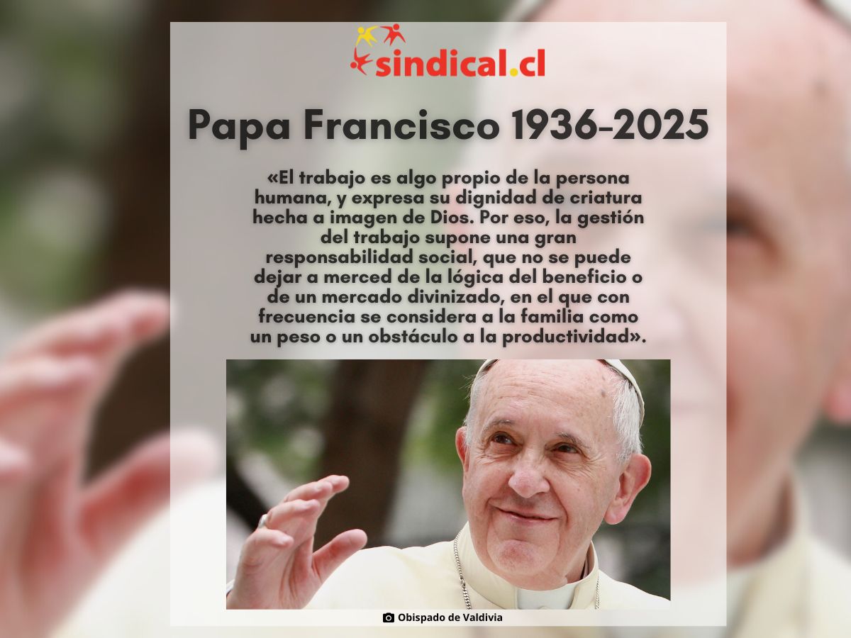 Desde Sindical.cl despedimos al papa con gratitud e inspiración para seguir su ejemplo como defensor de la justicia social, de los más pobres y marginados, del trabajo y su alianza con Dios.