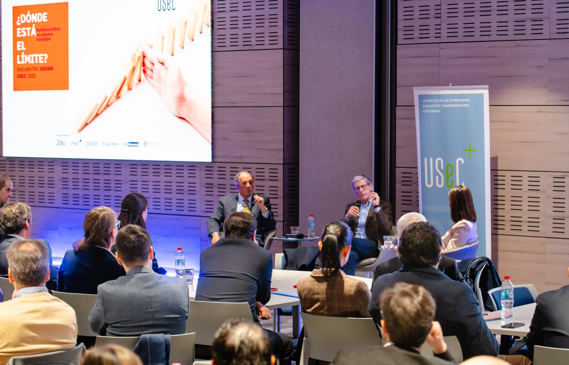 90 socios de la Unión Social de Empresarios Cristianos, fueron convocados el viernes 9 de mayo, para participar en el Encuentro de Socios USEC 2025 “¿Dónde está el límite? Decisiones éticas en entornos complejos”. El encuentro, realizado en el Edificio Corporativo de COPEC, fue moderado por la Consejera de USEC, Carolina Cuevas. Allí conversó con Juan Sutil, ex Presidente de la CPC y Presidente de Empresas Sutil, y Gonzalo Bofill, Presidente de Empresas Carozzi.
