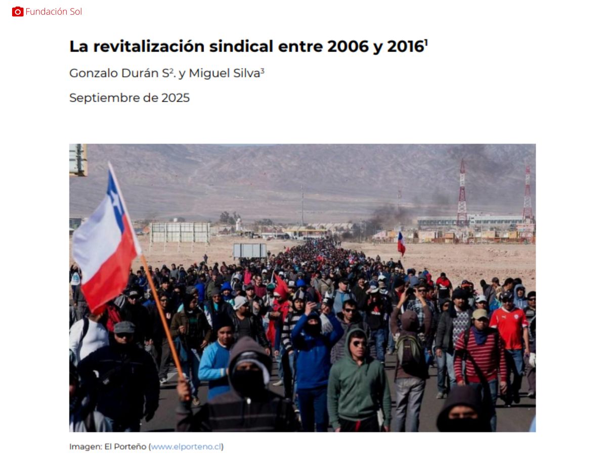 “La revitalización sindical entre 2006 y 2016”, es una publicación traducida al español del artículo “Union Renewal in Chile and the Rate of Surplus Value: A Marxist Approach”, escrita por Gonzalo Durán, investigador de la Fundación Sol y Miguel Silva, investigador independiente.