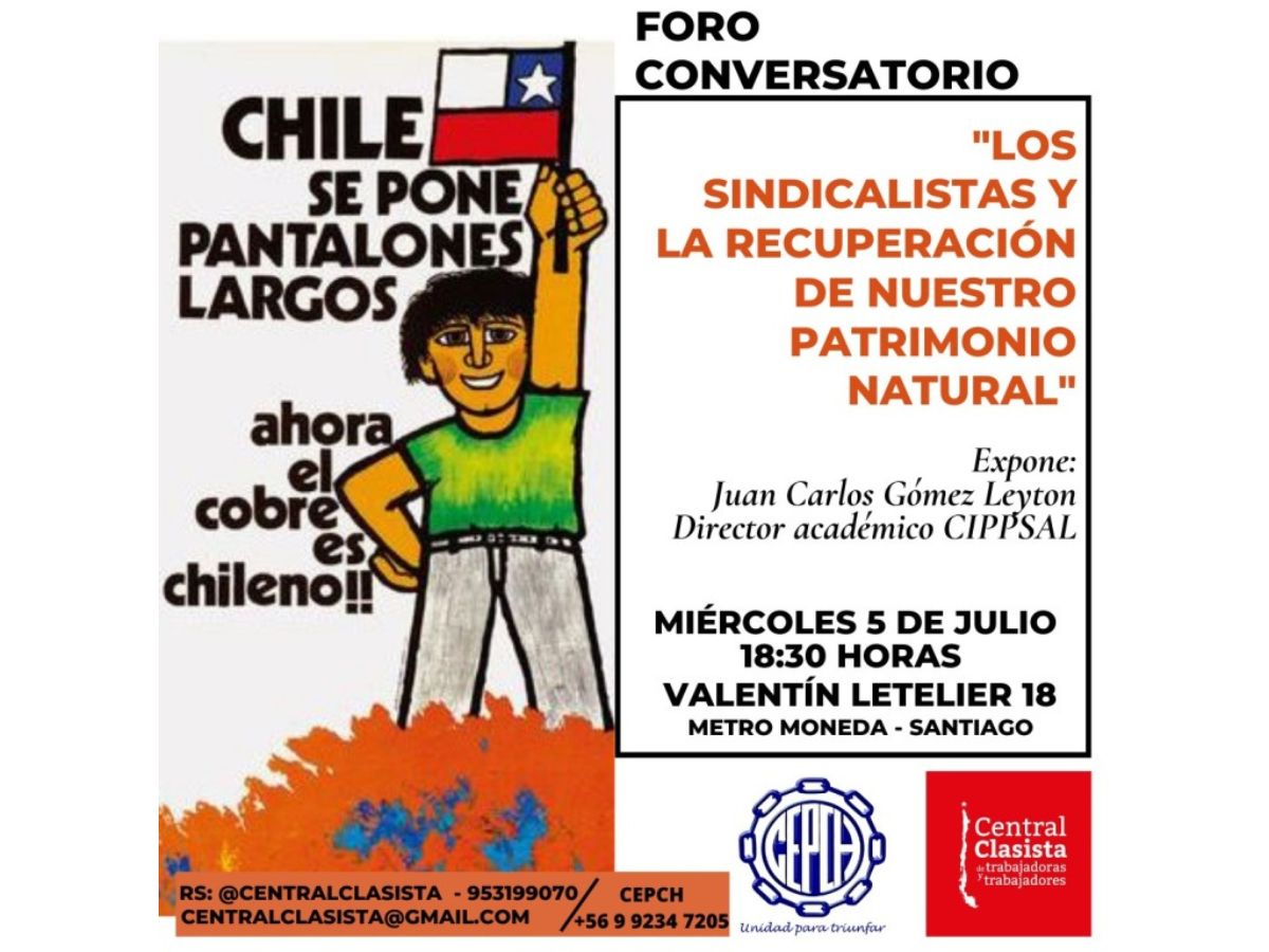 Actividades Central Clasista invita a foro «Los sindicalistas y la recuperación de nuestro patrimonio natural»